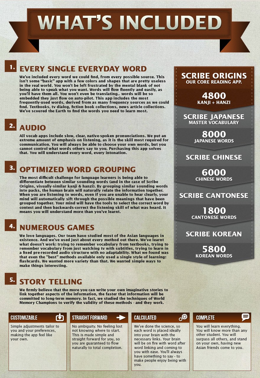 Download Scribe Origins Download Scribe Japanese Download Scribe Chinese Download Scribe Korean Download Scribe Cantonese Download Scribe Spanish